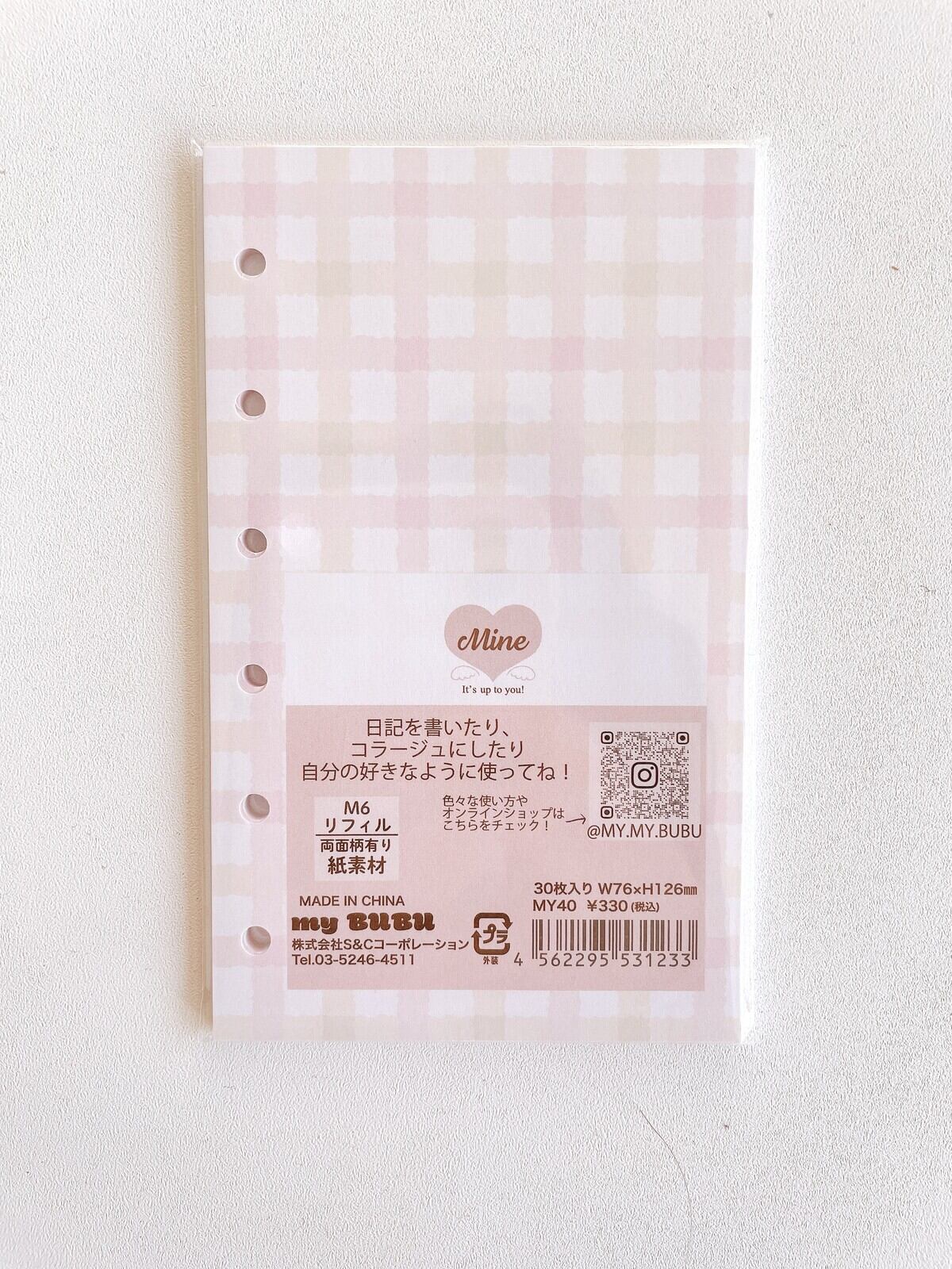 【手帳】Mine M6サイズリフィル チェック ピンク×イエロー 30枚入り MY40
